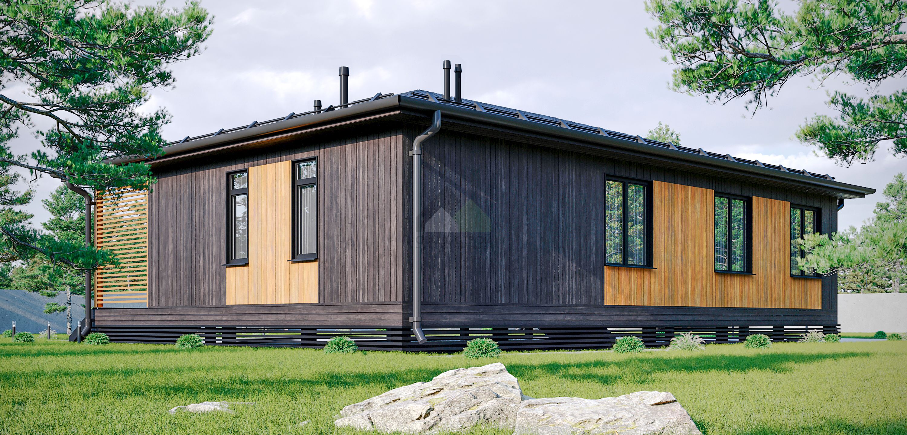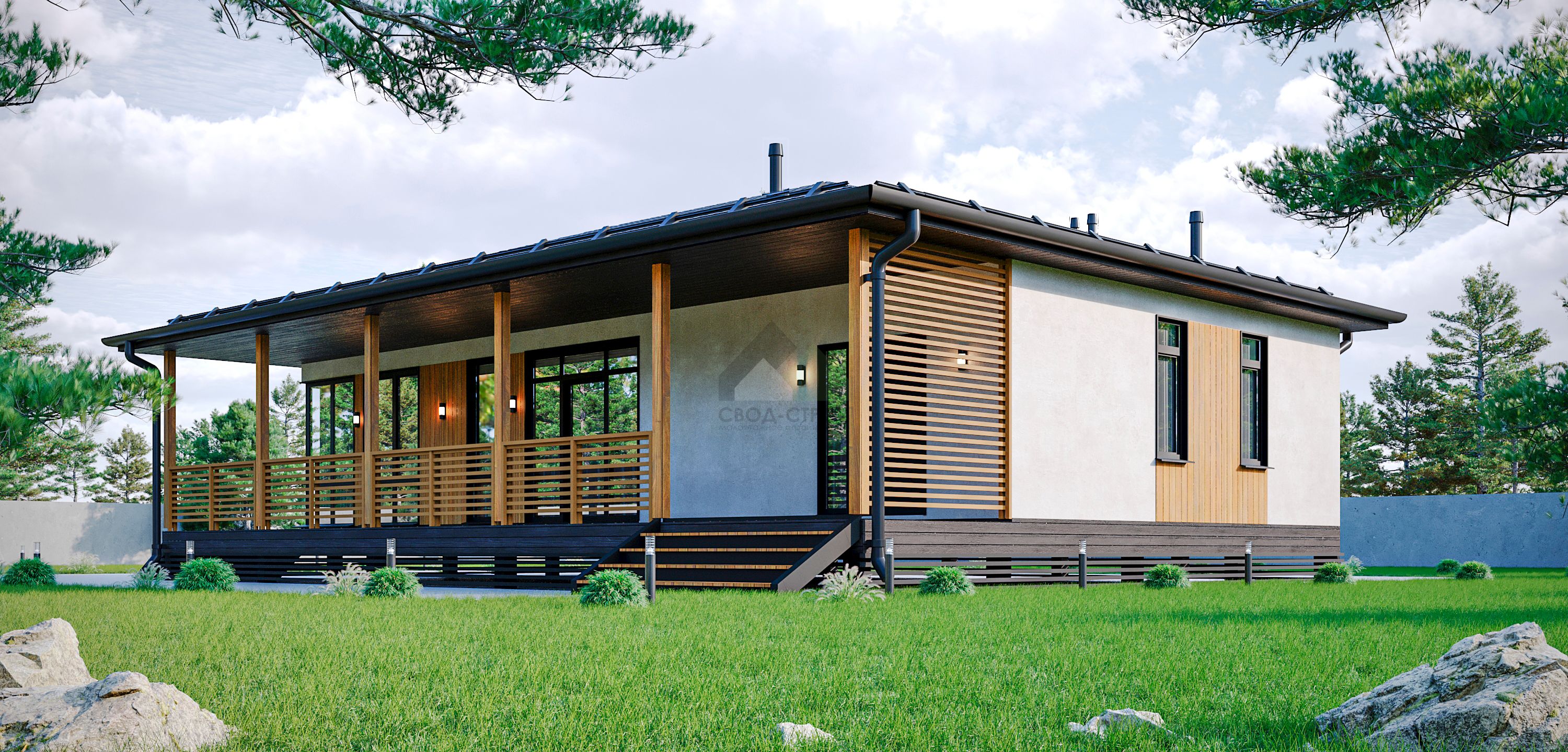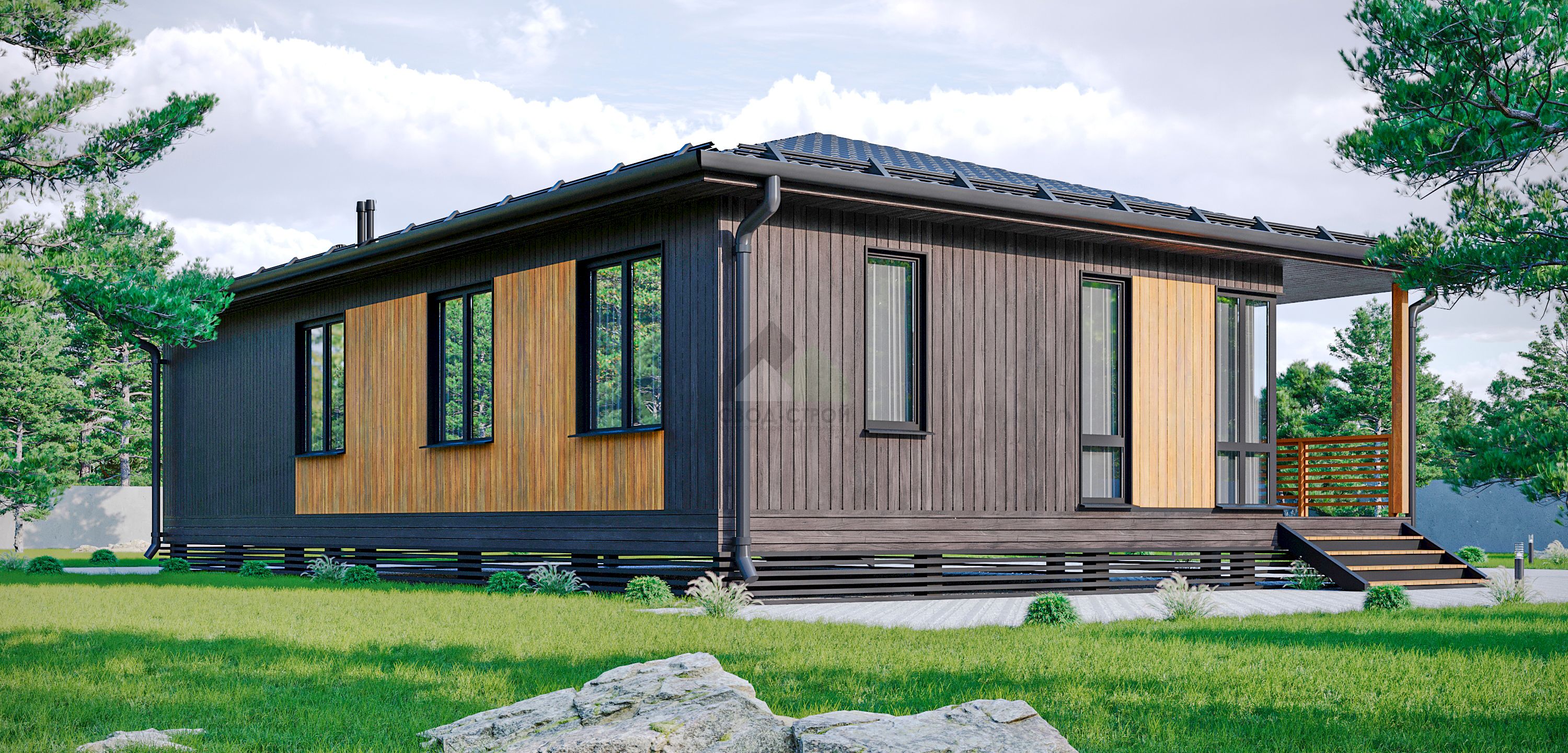 ТиповаяОптимальная комплектация: перекрестное утепление 200мм, внешняя и внутренняя отделка, имитация бруса внутри, чистовое напольное покрытие.от 6.76 ₽ млн