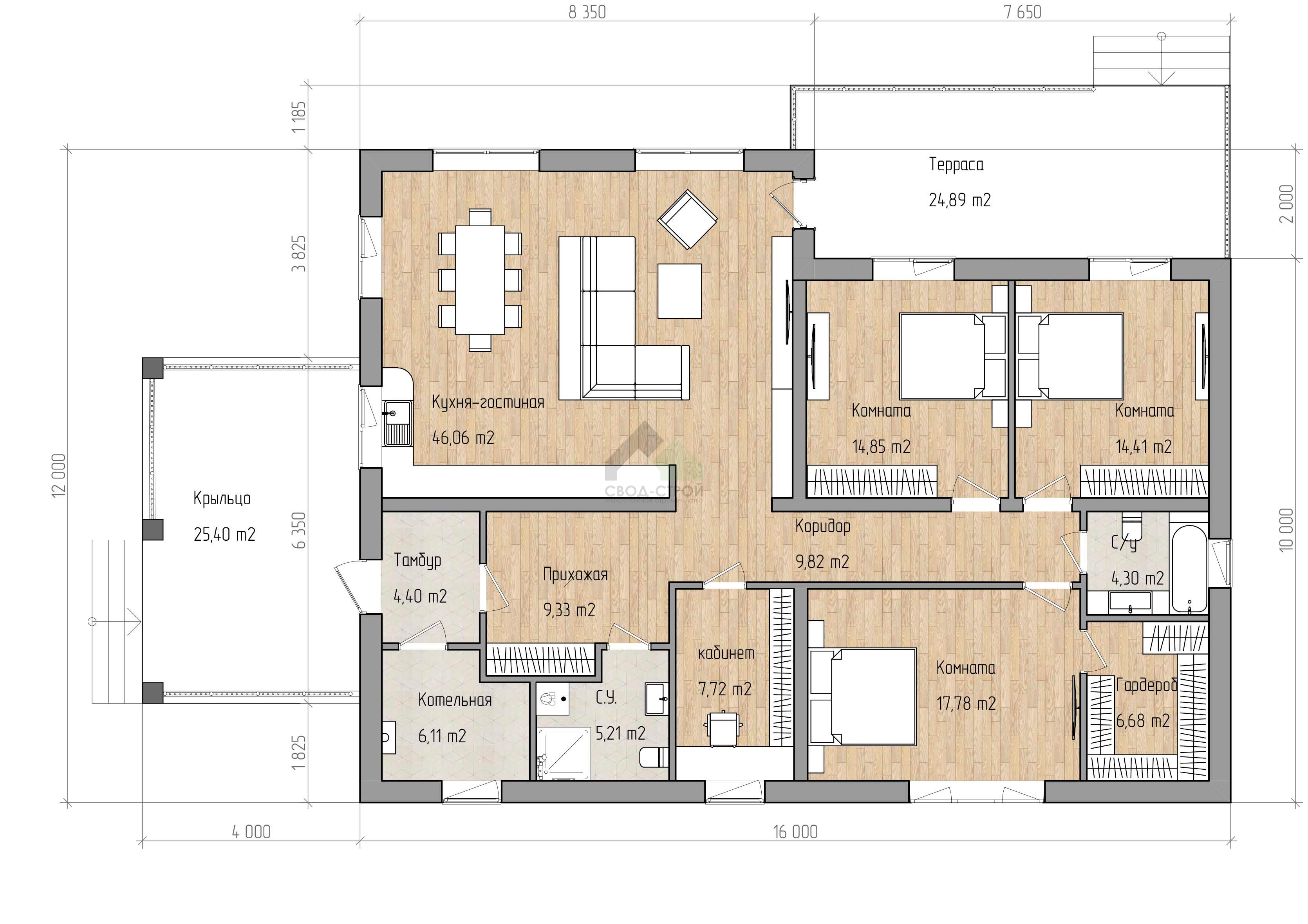 Выбирали по проекту. Понравился дом в СВОД-СТРОЙ. Нужен был одноэтажный дом. Спасибо архитекторам, менеджеру Ивану, Денису, помогли с ипотекой и оформлением всех документов, На связи были 24/7. Вопросов и проблем не было. Все шло по накатной. Спасибо Свод-Строю. Отдельный респект Ольге, сделали все, как мы хотели.