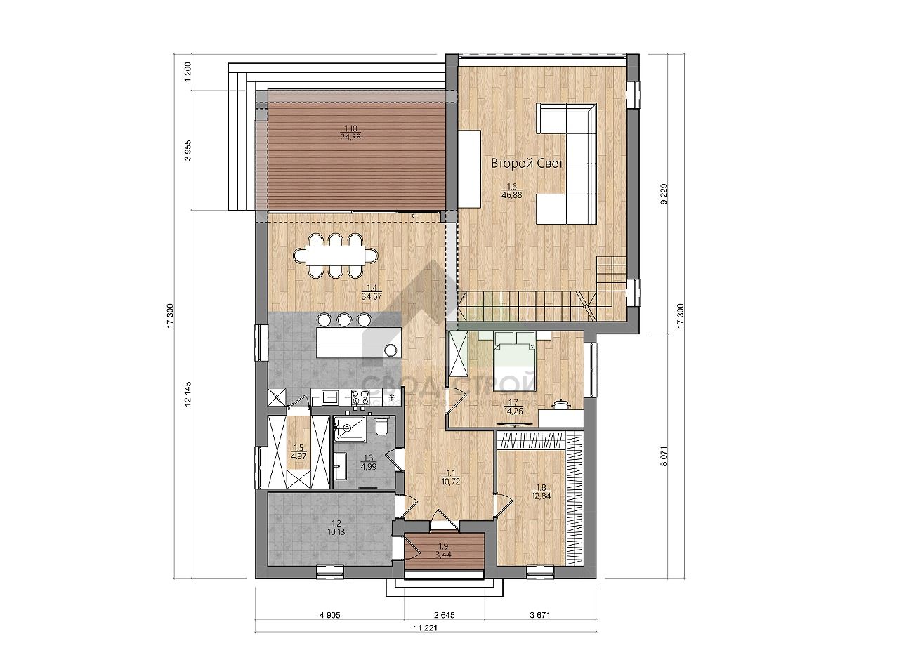 Выбирали по проекту. Понравился дом в СВОД-СТРОЙ. Нужен был одноэтажный дом. Спасибо архитекторам, менеджеру Ивану, Денису, помогли с ипотекой и оформлением всех документов, На связи были 24/7. Вопросов и проблем не было. Все шло по накатной. Спасибо Свод-Строю. Отдельный респект Ольге, сделали все, как мы хотели.